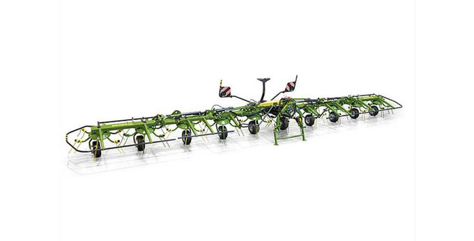 • Vendro – new KRONE tedder series: We present a new series of KRONE tedders which is badged Vendro. The new range replaces the existing KW range and lines up nine models: two 4-rotor machines (Vendro 470 and Vendro 560), three 6-rotor tedders (Vendro 620, Vendro 680 and Vendro 790), two 8-rotor tedders (Vendro 820 and Vendro 900) and two 10-rotor tedders (Vendro 1020 and Vendro 1120), covering working widths of 15' 4.8" to 36' 8.9" and offering the right solution for any farming needs.
